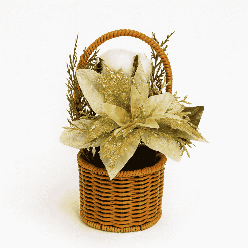 Toate elementele sunt fixate într-un coș împletit cu mâner, ce oferă un aspect rustic, dar elegant, perfect pentru decorul mesei, livingului, biroului sau recepției.